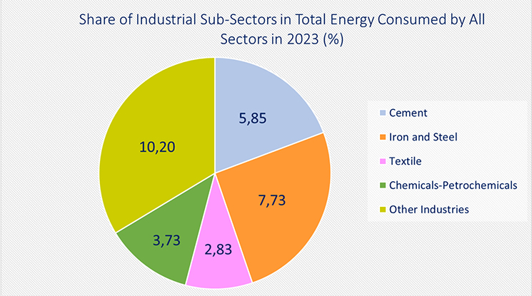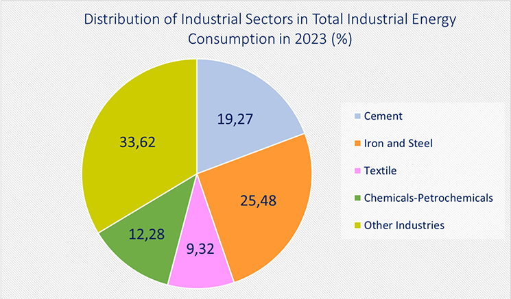 According to the 2023 data presented in the General Energy Balance Table produced by the Turkish Ministry of Energy and Natural Resources, the total energy consumption of all industries amounted to 121.4 million TOE, of which 36.8 million TOE was consumed by manufacturing industries. The sectoral benchmarking study conducted by the Department of Energy Efficiency and Environment (EVÇED) under the Ministry of Energy and Natural Resources stated that the cement sector, which consumed 7.1 million TOE in 2023, accounts for 5,85% of total energy consumption and 19,27 % of the consumption in the manufacturing sector.