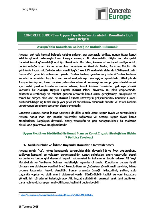 Concrete Europe'un Uygun Fiyatlı ve Sürdürülebilir Konutlarla İlgili Görüş Belgesi